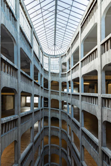 Le garage est une œuvre marquante de l’Art Déco, alliant fonctionnalité et esthétique de la modernité avec sa forme particulière, dite hélicoïdale. Il est construit sur sept niveaux autour d’un immense puits de lumière central. La voie de circulation en béton armé s’enroule continuellement autour de ce puits. Ce puits, couronné par une grande verrière, est la signature du lieu. Il assure un éclairage naturel maximal et offre un spectacle vertigineux vu d’en bas ou d’en haut.