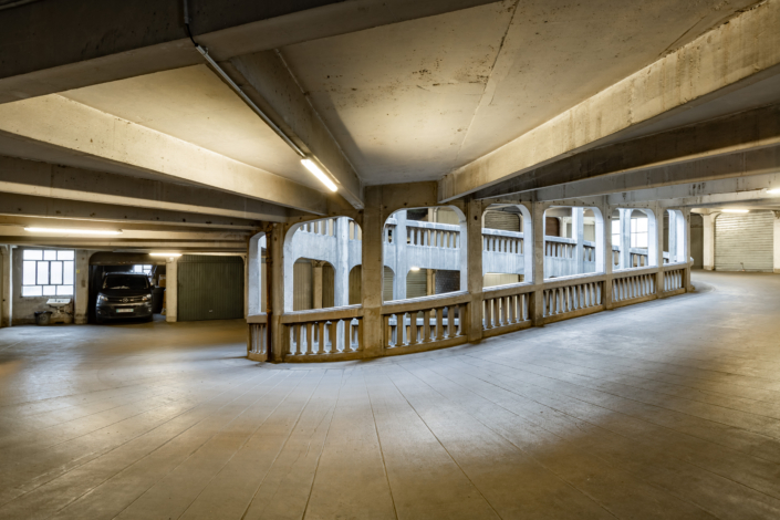 Suite à des aménagements notamment l’ajout de boxes sur la terrasse en 1952, l’édifice accueille aujourd’hui 252 emplacements de voitures (boxes).