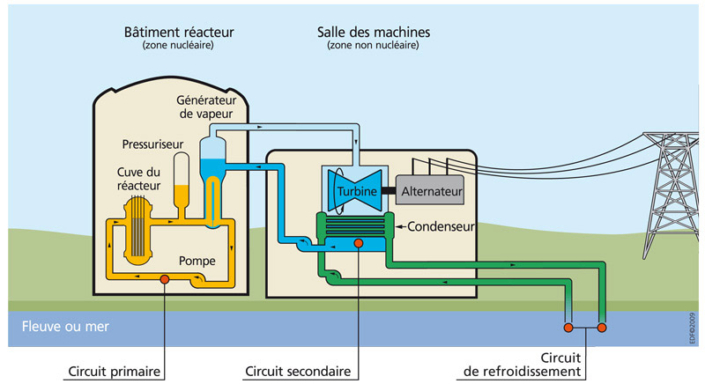 C’est pour cette raison que les centrales situées en bord de rivière possèdent des cheminées de refroidissement. Contrairement à l’océan, une rivière a un débit qui varie selon les saisons (sécheresse en été ou crues en hiver).